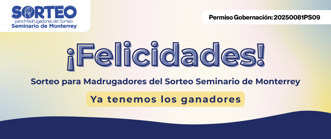 El sorteo se realizó en presencia del Lic. Oliver González Aguilar, Inspector adscrito a la Dirección de Juegos y Sorteos de la Secretaría de Gobernación. La reclamación de premios se realizará dentro de los 20 días hábiles a partir de la fecha del sorteo en las instalaciones del Seminario de Monterrey Nuevo León, A.R., ubicadas en Prolongación Corregidora Norte 700, Col. Plan de Ayala, C.P. 66217, San Pedro Garza García, N.L. Dudas o aclaraciones al teléfono (01) 81-11-60-13-13 ext. 1380. En caso de queja, favor de comunicarse a la Dirección General de Juegos y Sorteos al (01) 55-52-09-88-00.